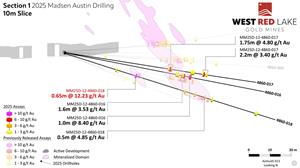 These results from the 12-4860 drill station are in addition to the Lower Austin intercepts recently announced on October 9, 2025 which highlighted 139.45 g/t Au over 7.8 metres (“m”), 74.70 g/t Au over 8.7m and 18.31 g/t Au over 7.5m; and on April 1, 2025 which highlighted 23.81 g/t Au over 5.4m, 30.16 g/t Au over 4.3m and 12.43 g/t Au over 10.5m. The 12-4860 station is located on 12 Level in the Madsen Mine at approximately 600m depth. Recent drilling from this area demonstrates the potential for discovery of additional high-grade lenses of gold mineralization in the main Austin Zone very similar to those that have already been delineated in the South Austin zone during 2025 (see press releases dated August 12, 2025, May 27, 2025 and February 26, 2025). The lower Austin area will continue to be a key focus of drilling for the remainder of 2025.